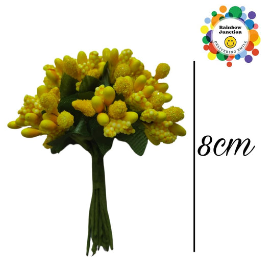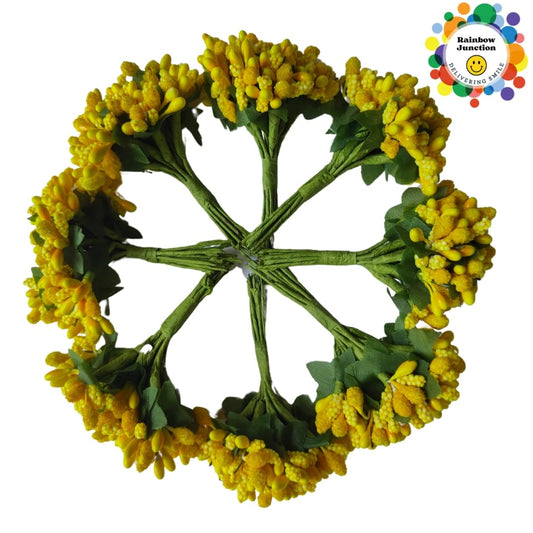 Rainbow Junction® Artificial Yellow Pollen Flower for DIY, Art and Craft, Jewellery Making, Hair Accessories, Home Decoration (Yellow,6 Bunch)