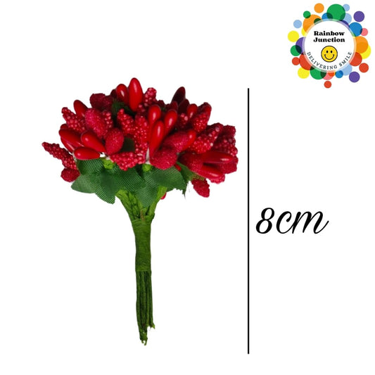 Rainbow Junction® Artificial Red Pollen Flower for DIY, Art and Craft, Jewellery Making, Hair Accessories, Home Decoration (Red,6 Bunch)