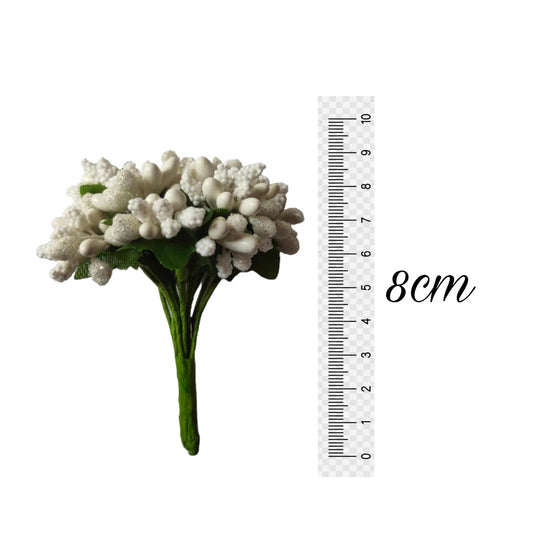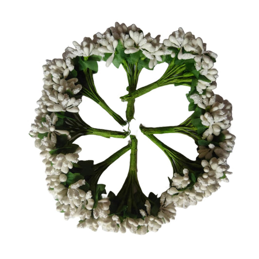 Rainbow Junction® Artificial White Pollen Flower for DIY Craft, Jewellery Making, Hair Accessories, Home Decoration (White,6 Bunch of 12 Pollen Each, 72pcs)