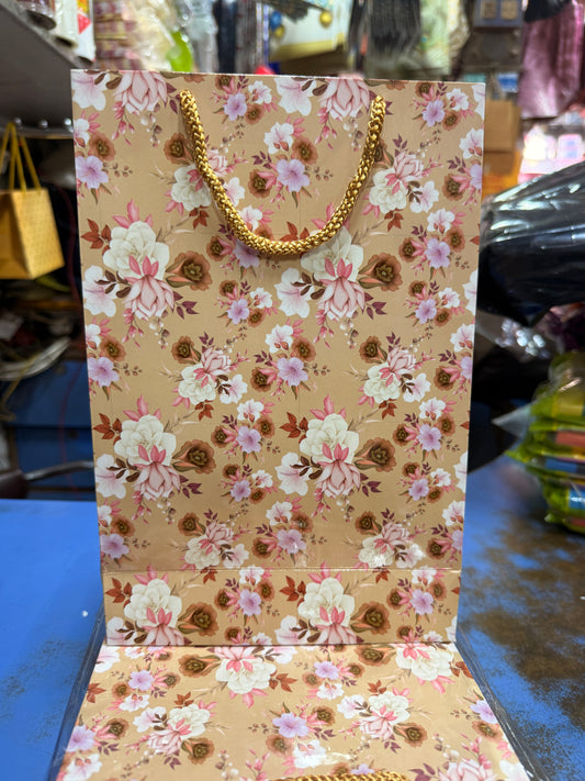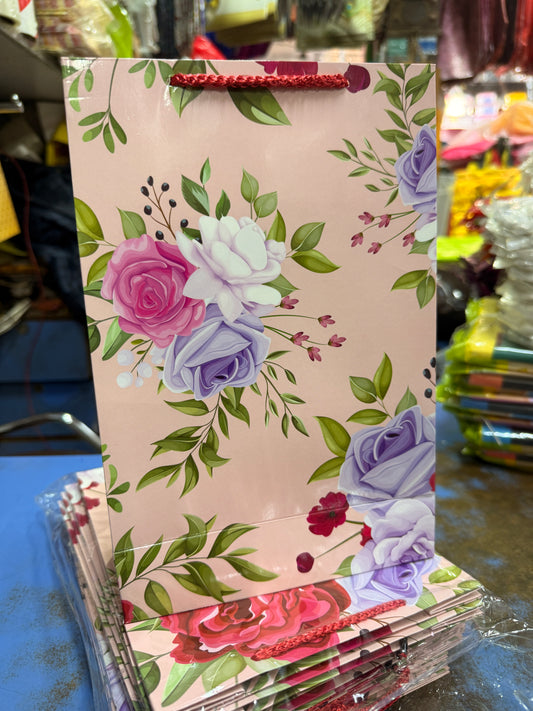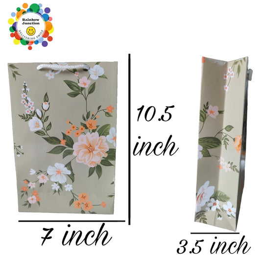 RAINBOW JUNCTION® 10pcs Paper Bags–Return Gift Bags with Handles For Weddings,Anniversarie, Birthday,Diwali,Navratri,Holiday Presents,Events,Baby Shower,Valentine’s Day (Floral Theme, 26.5x17.5x7.5cm)