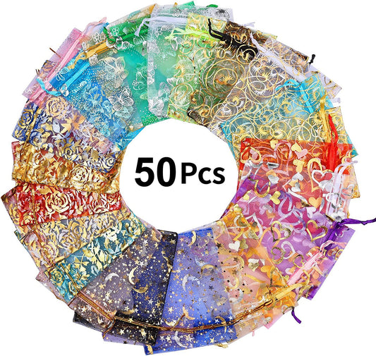 ABDROZ– Potli Bags, Organza Pouches 4x6 inches with Drawstring Small Potli Bags for Return Gifts for Wedding| Party |Baby Shower| Dry Fruit Pouches (Mixed Colors, 50)